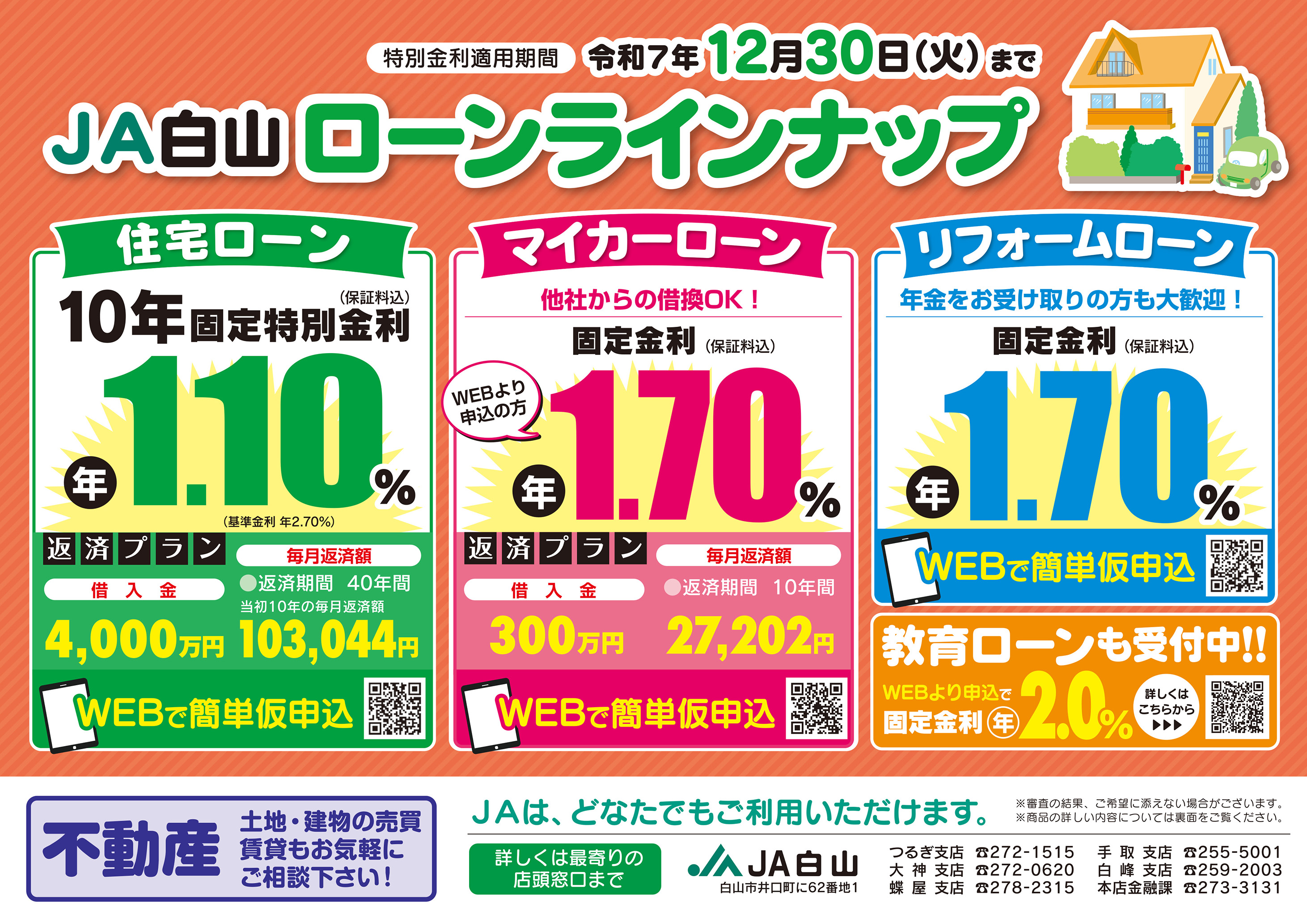 JA白山では、現在自動車共済のお見積りキャンペーンを実施中! 期間中にJA自動車共済のお見積りをしていただくと、 JA白山レトルトパックごはん(2個)...